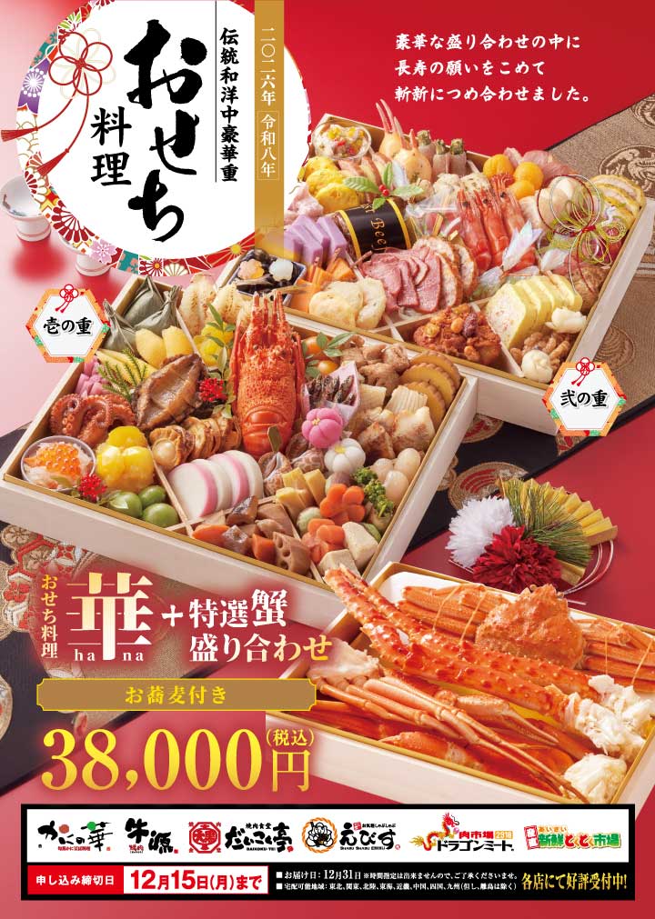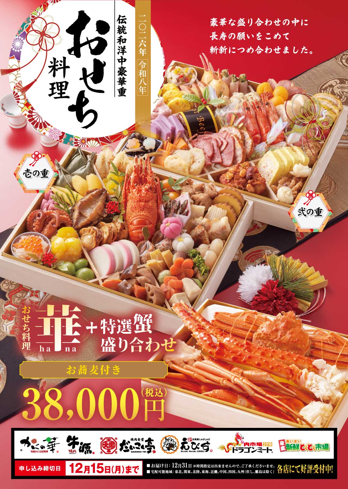 お正月を豪華に彩る、かにの華の「おせち」はいかがですか!!