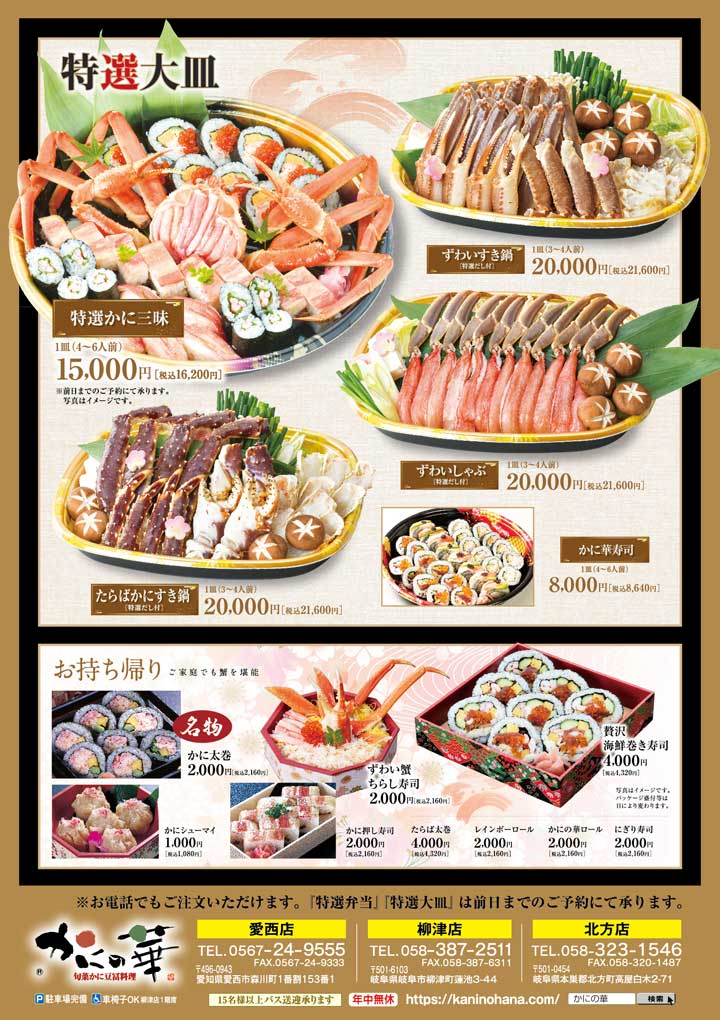 かに料理・豆冨料理の店 / かにの華 愛知県愛西市 / 岐阜県本巣郡北方町 / 岐阜県岐阜市柳津町