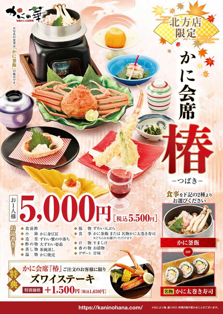 北方店限定企画「かに会席・椿」で「かにの華の秋」をご賞味ください!!