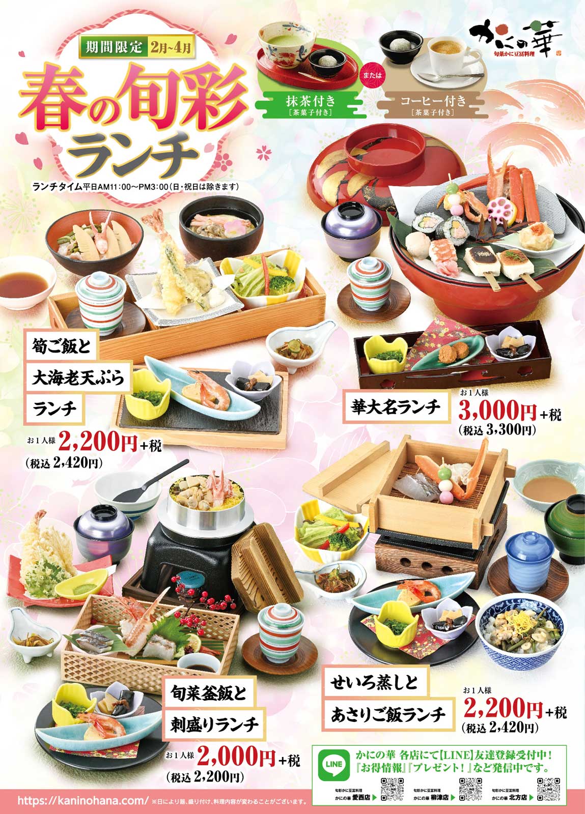 いろいろ選べる「かにの華の春のランチ」をお楽しみください!